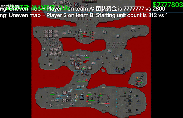 开局时,敌对的灰色人机拥有$666000$以上资源且带有基地