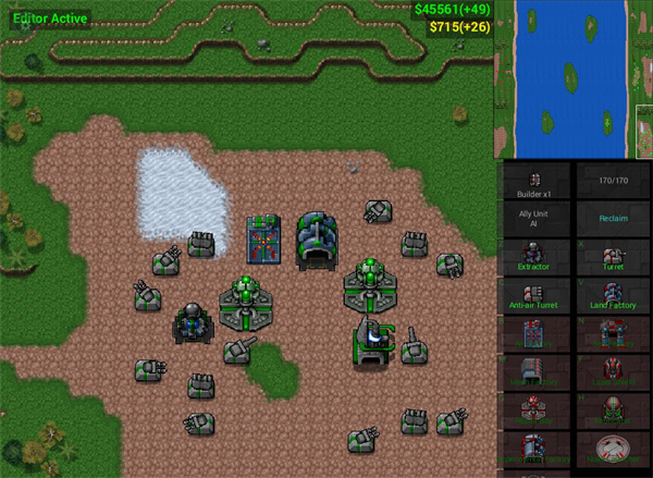 玩家在游戏开始时,拥有55000资金,一座基地,8名建造者,12辆悬浮坦克,8座T2机枪炮塔以及8座防空炮塔。