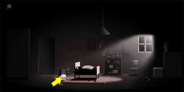 2、待他入睡后,游戏会自动切换场景,切换至下方场景后,点击小人使其起床。