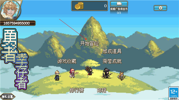 1. 开启游戏,在此你能够先熟悉下游戏里的特色道具并查看成就。接着点击【开始冒险】。