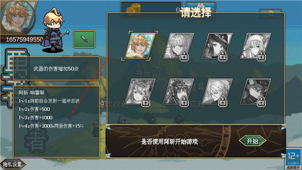 2、选择一位勇者进入游戏,每一个勇者都有他专属的属性效果。