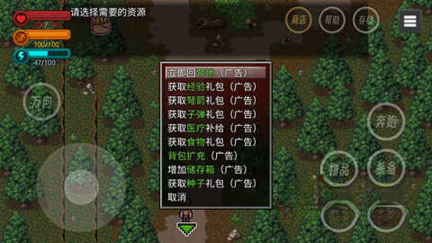 2. 操作方式跟之前相同,左下角为控制键,右侧是物品、装备之类的状态栏,存档与求生指南处于右上角。