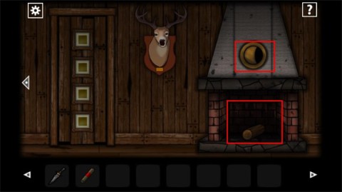2. 在厨房的左下角获取木柴,于右上角的砾板上寻得刀具。