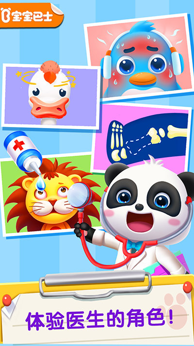 这是宝宝巴士旗下的一款儿童启蒙教育游戏。游戏主要讲述医生如何为有需求的小动物提供治疗,整体画风温馨,能有效帮助小朋友缓解对医院的恐慌。在游戏里,小朋友会化身可爱的小动物医生,在这里,会迎来各种前来就医的小动物。小朋友要通过小动物对病情的描述,使用相应的医疗器材进行诊断,最后为小动物治疗,助其恢复健康。目前,游戏共有7种玩法,每种玩法都有不同的小动物等待你来医治。