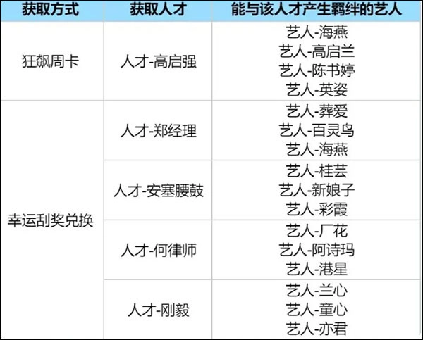 前期大家要兑换的艺人,基本就是上面提到的这些。之前说过可以优先培养【郑经理】这个人才,那么重点培养的艺人就是:【海燕】哦。【海燕】名气晋升能够获得宣传经验加成,提升人才羁绊还能增强【郑经理】的人才能力值,这对前期提升赚钱速度帮助极大。