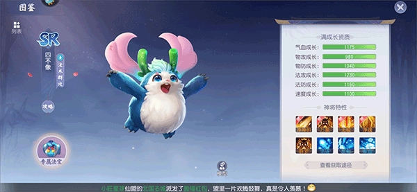 四不像是游戏里最好培养的英雄,能从R品质提升至UP品质,而且专属法宝还能通过主线任务直接升至5星。四不像的技能一定要具备保命效果,搭配自身的被动技能,能够多次保命,进而提升其生存能力。此外,除专属法宝外,还必须佩戴波澜剑,这样每次保命后,可借助群攻有效地回复血量,又大幅延长了他的生存回合时长。