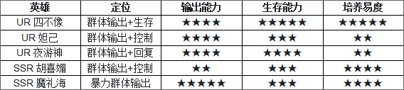 总结:本团队拥有2个UR英雄、2个SSR英雄,还有1个系统赠送的UR5星英雄。值得一提的是,其中1个SSR英雄可通过任务活动获取,还能升至满星。这样的阵容培养成本极低,却能收获极佳效果。公测之后,这种暴力、简单、直接的阵容,必定会深受玩家喜爱。