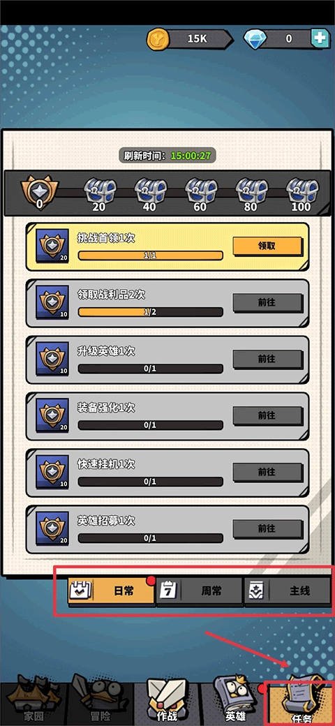 3、玩家除需完成章节任务外,任务页面中还有各式各样的日常、周常以及主线任务有待完成。
