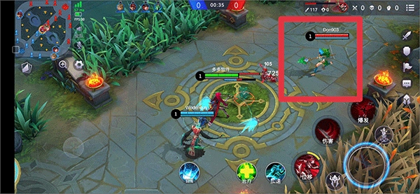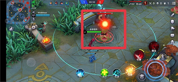 5、游戏开启后,借助屏幕左侧来控制英雄移动,屏幕右侧设有普通攻击与专属技能。接着,操控角色奔赴上、中、下三条路线,带兵线并对敌方防御塔展开攻击。