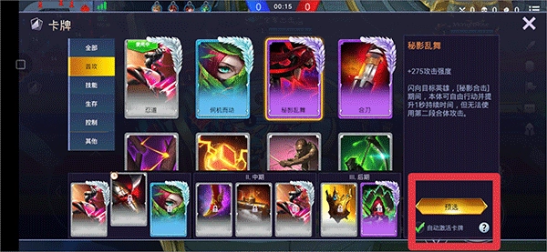 7、无论是击杀小兵、敌人,还是野区动物,都能获取金币。金币可用于购买各类具有增益效果的卡牌。在众多卡牌里挑选出有用的卡牌,点击预选,当金币数量满足条件时,该卡牌便会自动激活。