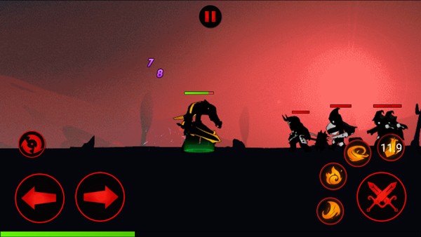 5、稍等片刻等待加载完成,进入游戏后画面如图所示。该游戏采用横版操作模式,左边的方向键用于控制角色左右移动,右边则设置了攻击键以及技能键位。