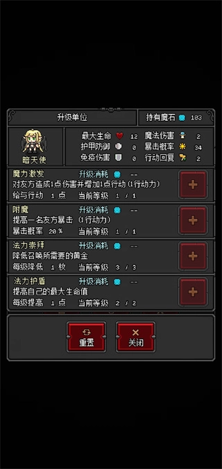 定位:辅助推进、夺岛看过评价后,我对暗天使的看法有了一些改变。先说生命方面,2点生命实则无关紧要,毕竟在这款游戏里,抵挡才堪称神器。至于增加暴击率,实际作用并非特别显著,对我而言,概率这东西完全看运气,所以我向来不建议考虑冲锋。也就只有蝙蝠,凭借6点行动力,有足够的条件去赌眩晕效果。这里情况一样,加暴击率的基本无需考虑,除非行动力多得用不完。接着说辅助推进,简而言之,就是借助暗天使的技能,加快部队奔赴前线的速度,防止因后援不及时致使前线溃败。不过,这个办法比较费钱,好在一次投入能获得长期收益。