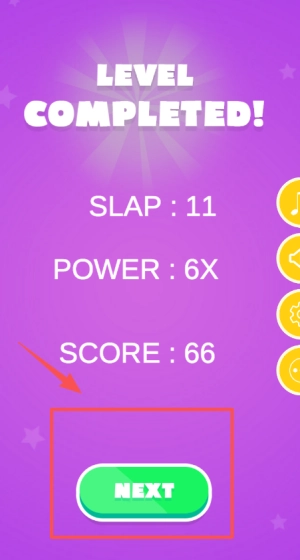 4、当完成一关后,点击左下方绿色的“NEXT”椭圆按钮,即可进入下一关,接着挑战游戏。