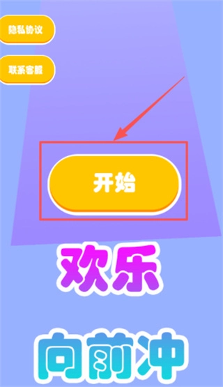 1要启动游戏,只需点击屏幕中央红色框内的黄色椭圆形开始按钮。若有需要,还能通过隐私协议链接联系客服。在下方,会显示彩色的游戏标题。
