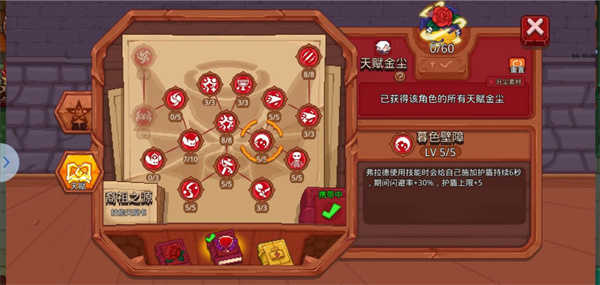 天赋【巨大化】:角色体型增大20%,不仅人物变大,所有攻击特效、卡牌魔盒效果特效同样随之变大。变大带来的是攻击范围的扩展,无需担忧因变大而更易遭受敌人弹幕攻击,毕竟你的护盾也相应增大,此外,该天赋还有其他增益。