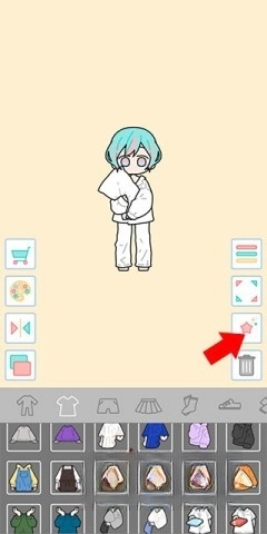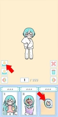 4、最后在下方界面里,选择先前保存的搭配,长按该搭配便能拖动至屏幕上。下滑找到垃圾桶按钮,即可删除角色。若想回到搭配界面,同样点击右侧第三个按钮就行。