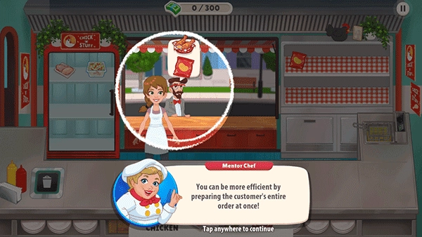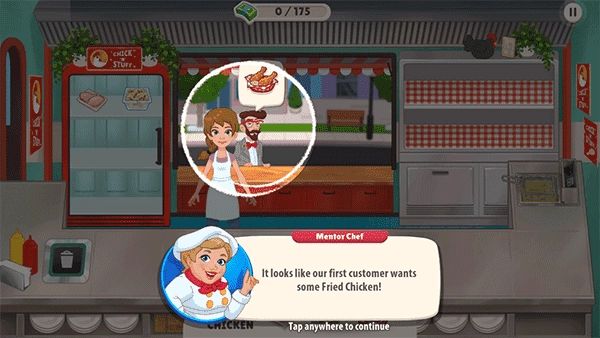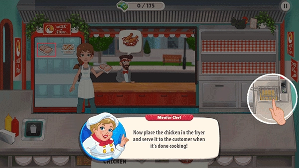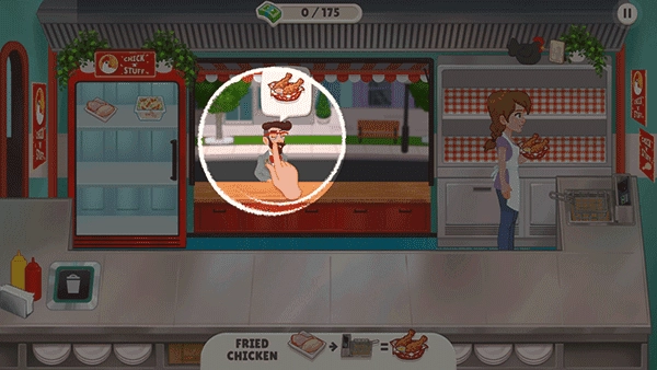 进入游戏后,我们能够发现顾客头顶会出现“炸鸡”标识,这便是他们的需求。
