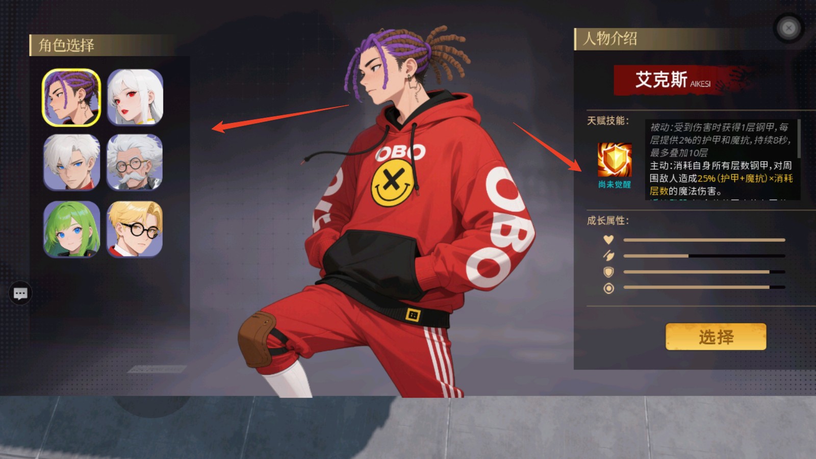 5、在当前版本中,玩家有六个角色可以挑选,每个角色都具备独特的天赋技能,玩家凭个人喜好选择就行。