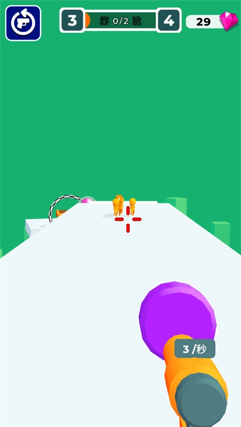 2、装备好武器之后,再点击战斗按钮 3、关卡中,利用指尖控制武器移动瞄准敌人即可进行发射