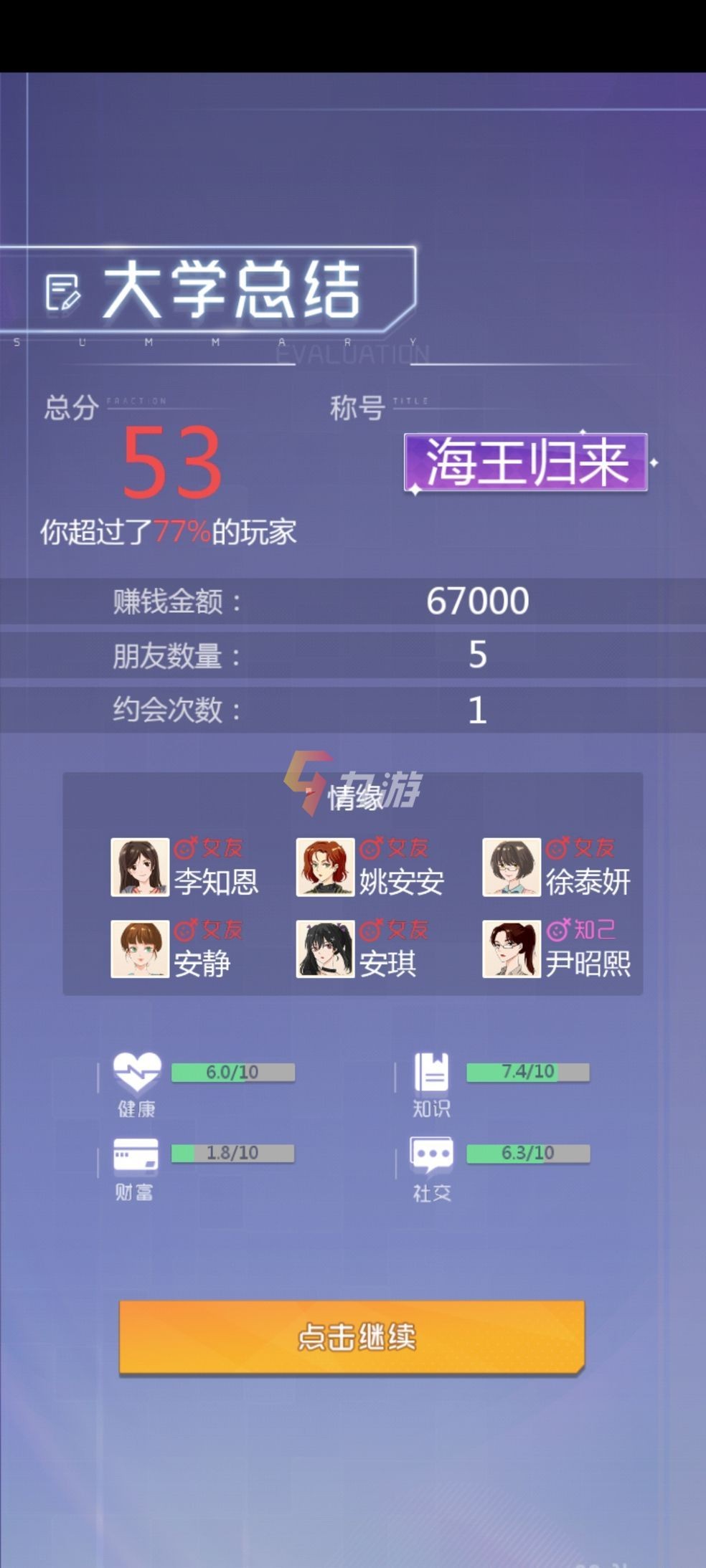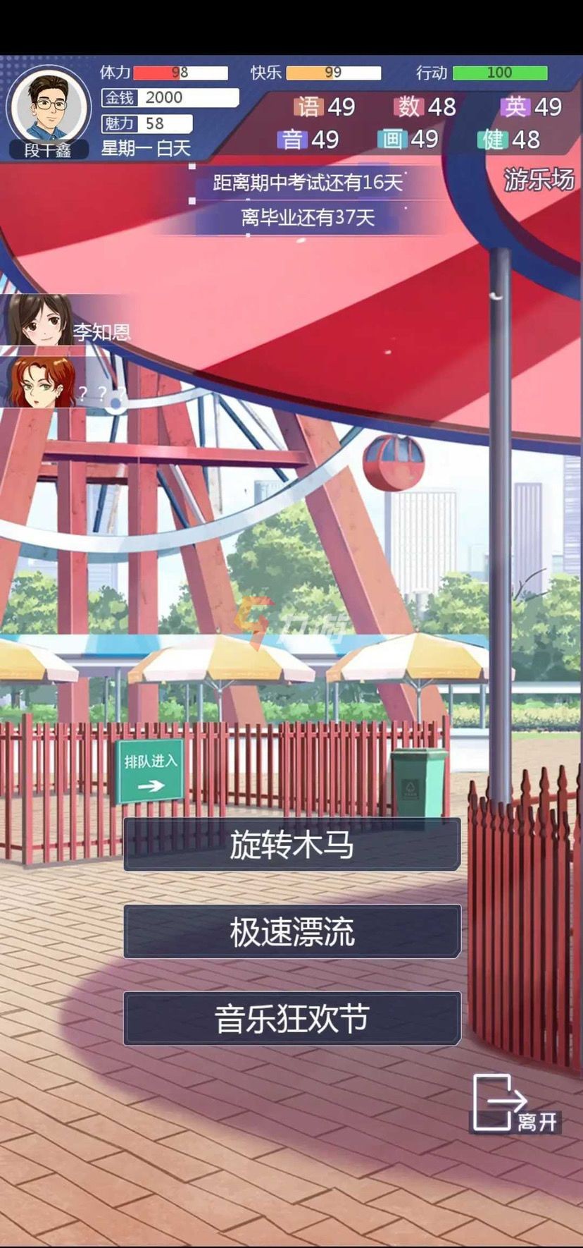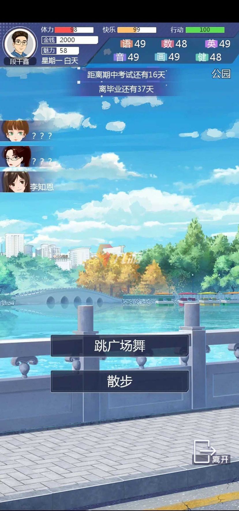 在游戏里,大家会遇到6位女生。要是碰到了自己心仪的类型,一定要记得点击“偶遇”按钮,这样才能和她们聊天、加深感情。另外,游戏给小伙伴们的发展时间只有40天,所以时间相当宝贵,得规划好这一周想把感情推进到哪个阶段。