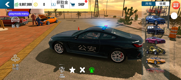 若确认要把这辆车改装成警车,只需点击“我的”,车辆便会安装警灯,驾驶它就能对超速的玩家处以罚款。