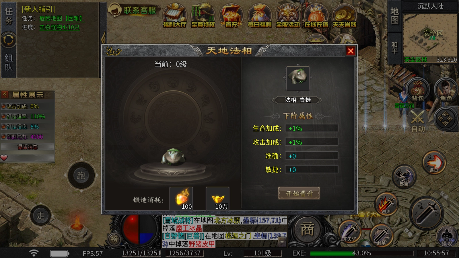 天地法相:提升时需消耗法相碎片与元宝,核心作用是增加人物的生命与攻击加成,同时也会提升准确和敏捷属性。