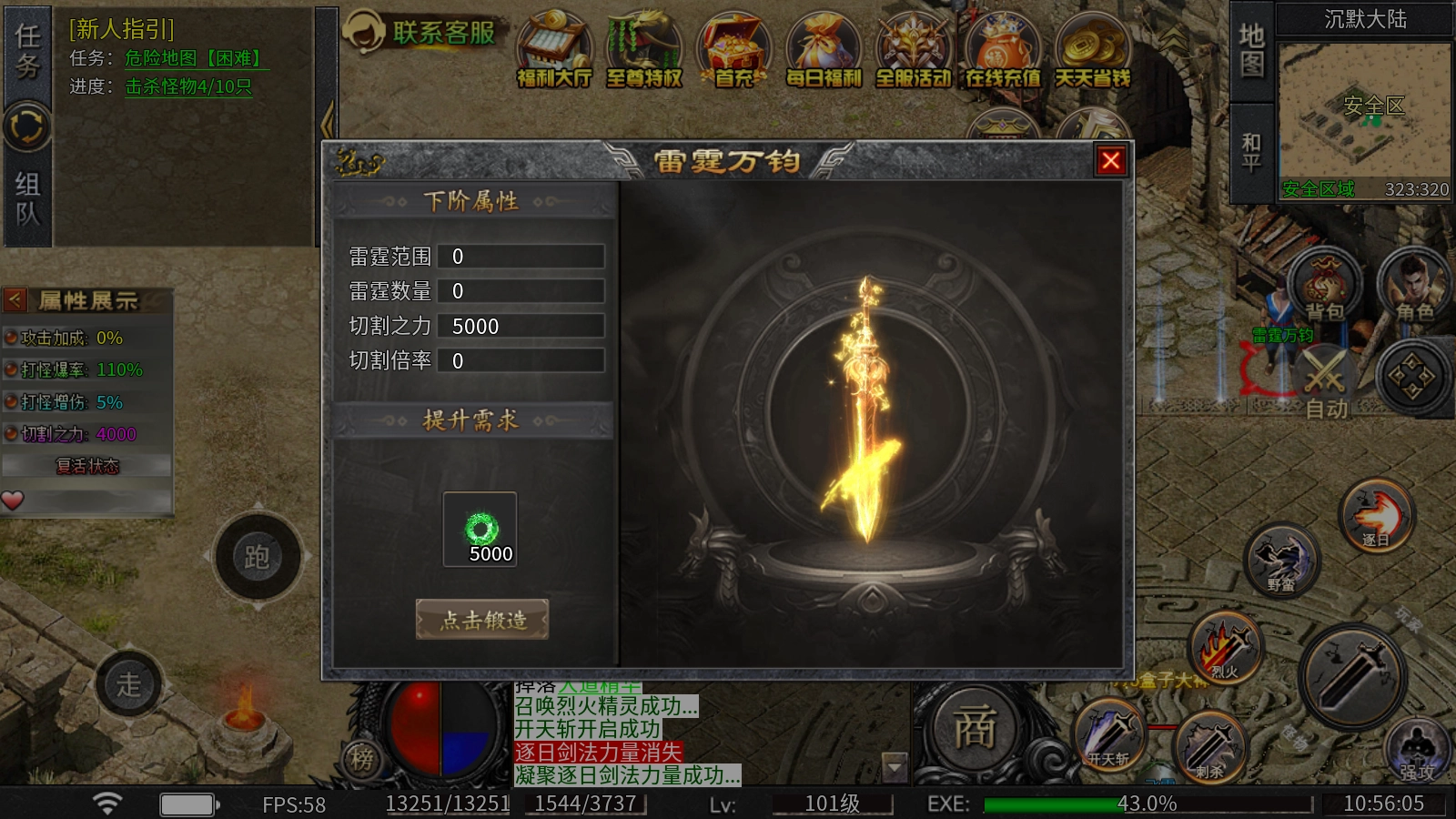 雷霆万钧:消耗灵玉就能提升,核心提升切割之力,随着等级不断提高,切割的范围与数量也会相应增加。