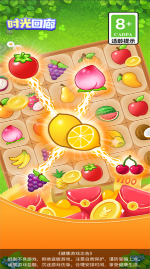 在时光回廊游戏里,会出现种类丰富多样的水果图案,你需要找出其中相同的两种水果,再通过连线的方式把它们消除掉。