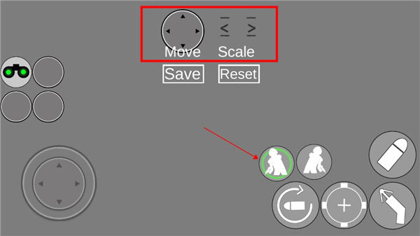 进入后,点击任一操作图标,若图标显示绿圈即表示已被选中,随后点击顶部的按钮就能进行更改;轮盘用于控制位置,箭头则用来调节图标大小。