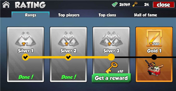 在黄金等级时,战斗会持续7分钟,或者团队达成最多50次击杀即结束