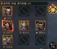 建议搭配步兵部队,即便被兵种克制,也能与策士队伍一战,阵法选用玄甲阵。