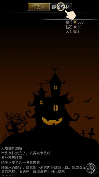 木头快烧完啦,去静谧森林收集木头吧;