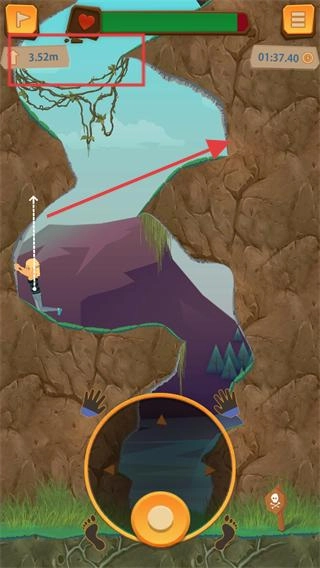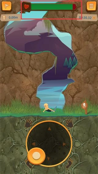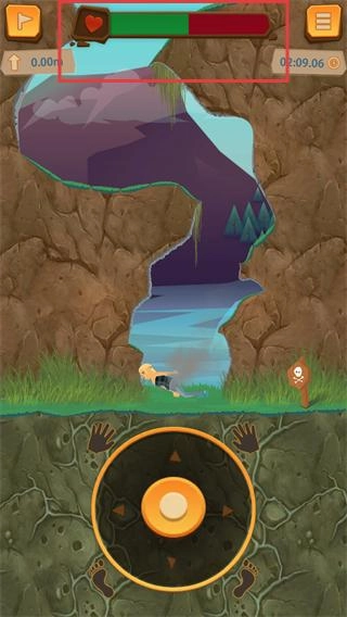 开始后首先留意左上角的生命值(绿色条),攀爬过程中要尽可能减少失误,以免生命值下降(出现红色)。
