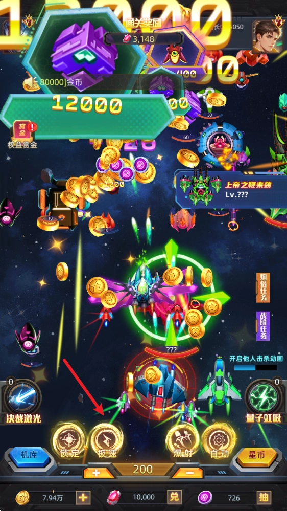 下方还能开启极速、狂暴、自动等功能,助你拥有更强劲的火力。