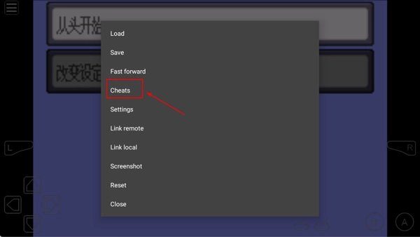 打开gba模拟器,在允许游戏运行之后,选择“Cheats”选项。