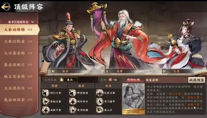 这套阵容搭配的技能获取难度很低,还有不少可以平替的“A”级技能,只要我们逐步收集技能,就能组出这套强度不低的“秦楚反击盾”阵容了。