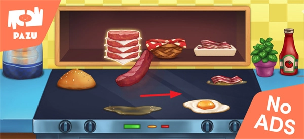 进入厨房后,玩家得迅速处理食材,像牛排、鸡蛋这类,直接煎制即可。