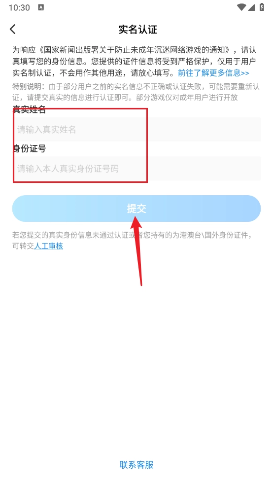 最后在实名认证页面填写相关信息,点击“提交”按钮就可以了。
