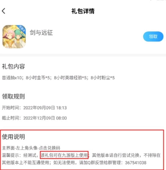 ②在兑换礼包之前,建议先查看一下礼包的使用说明,确认自己当前的游戏平台版本是否满足兑换要求哦