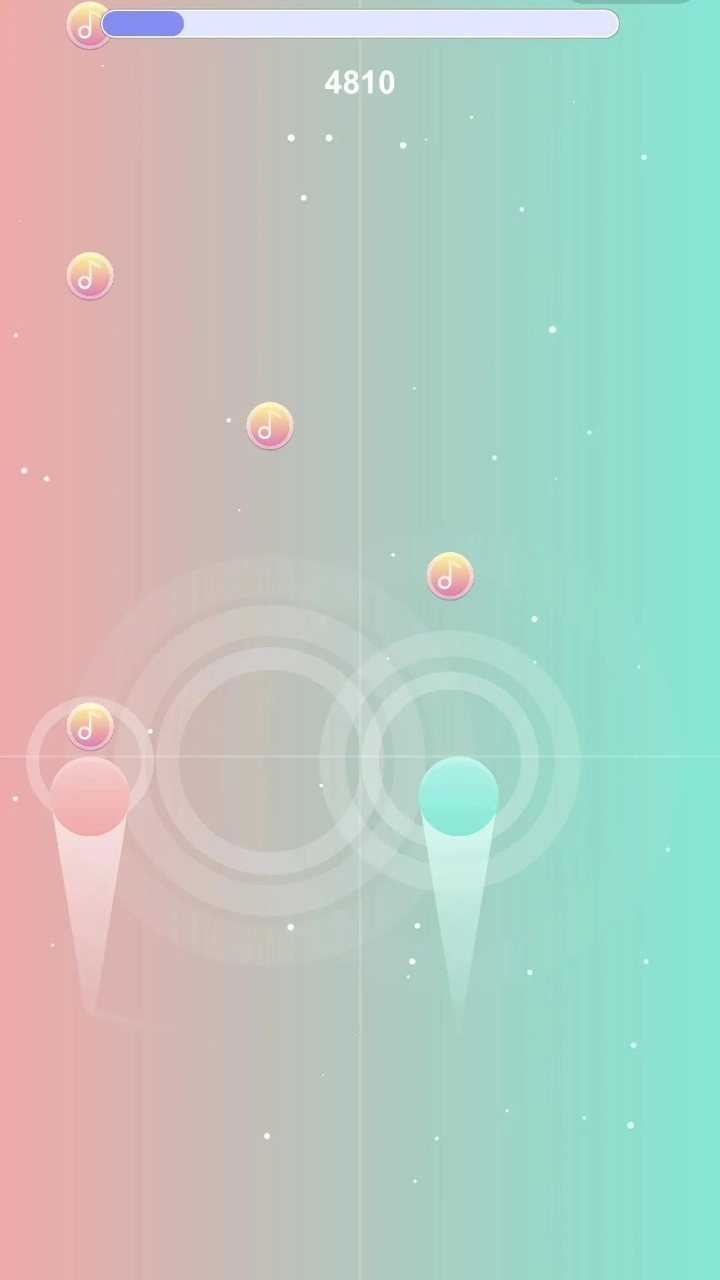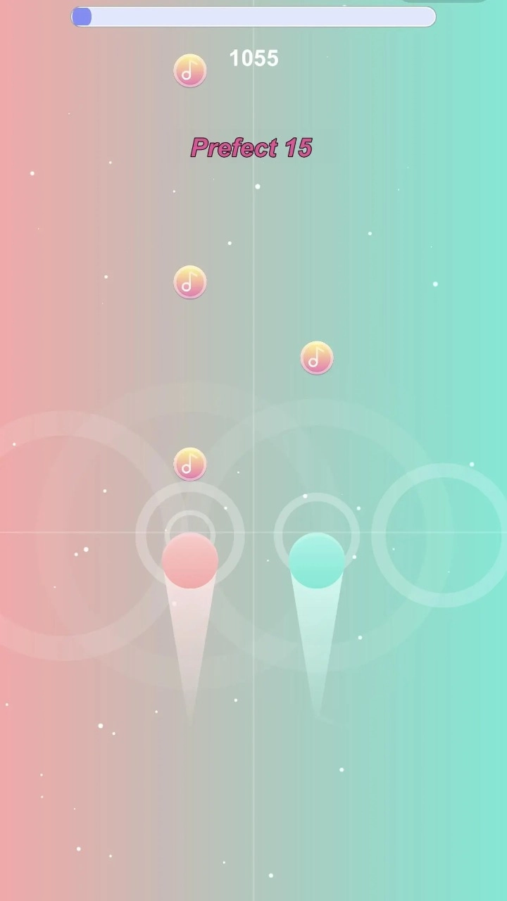 在《光影同行》里,玩家将操控小球跟随音乐节奏完成移动与碰撞的操作,每首歌都各具特色,为玩家带来多样的节奏体验。根据游戏玩法说明,玩家需操控双球去触碰掉落的音符,同时留意音符位置的变动,一旦没能接住音符,游戏就会失败,需要重新开始。