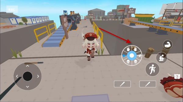 通过右侧的轮盘,能够操控角色做出抬脚飞踢等各类动作。