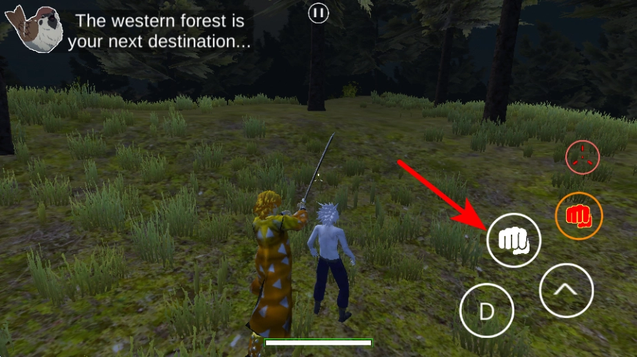 战斗结束后,可借助移动按钮控制角色前往提示所示的西部森林等新目标区域,探索新场景、触发新剧情,以此推进冒险进程。