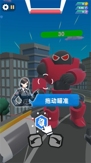 完成闪避操作后,界面会给出释放攻击的提示,此时点击下方的攻击按钮,就能操控机甲向敌方发动攻击,持续进行输出直到将敌方击倒。