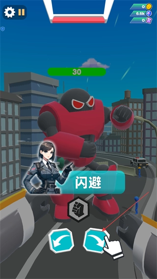 在战斗过程中,当敌方发动攻击时,界面会弹出闪避提示,此时点击下方的双向箭头按钮,即可操控机甲执行闪避动作,从而避开伤害。