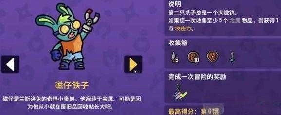 能力:第二只爪子配备了一块大磁铁,而且当我们单次收集的金属道具数量达到至少5个时,就能增加1点攻击力。