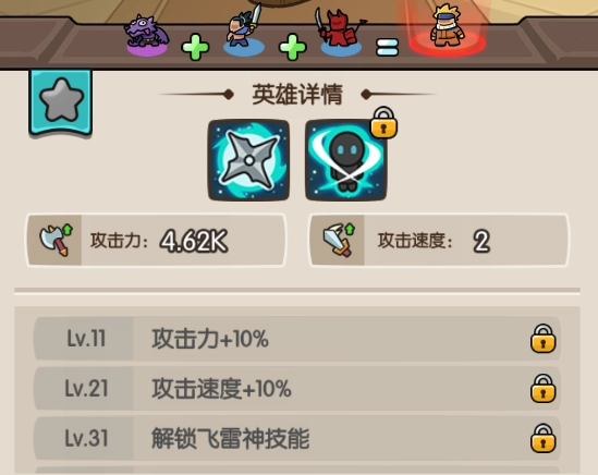 玩家召唤出的英雄可通过三合一的方式合成更高级别的英雄,最终能借助特定组合召唤出神话英雄,实现横扫一切的效果。