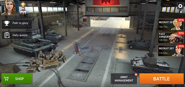 通过进攻敌人或其他玩家获取资源,以此快速增强自身实力、提升战斗力,最终在战力排行榜上登顶全服,打造属于你的王牌重装部队!