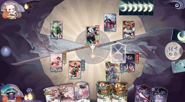 完整的阵容由四位式神组成,每个式神都配备8张专属卡牌,每回合会从牌库抽一张卡牌放到手牌里。