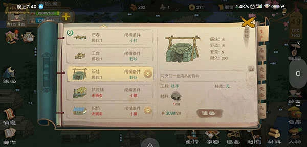 天黑之后可以选择快速跳转到第二天。到了第二天,安排两位老人去采集野菜,确保食物供应不中断。年轻人则负责收集石头和木头,优先建造衣坊。毕竟要赶在夏天到来前做好“清凉”的衣物,否则人们容易中暑引发内疾,一旦生病劳动力就会下降,严重时还得用药治疗,这对前期人手紧张的我们来说十分不利。因此,能提前避免的问题就要尽量避免。