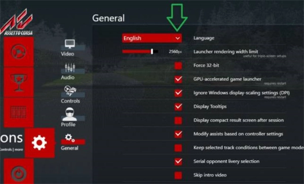 下拉找到双齿轮样式的【General】常规设置项,接着在【General】的设置目录里,找到Language语言相关的设置选项。